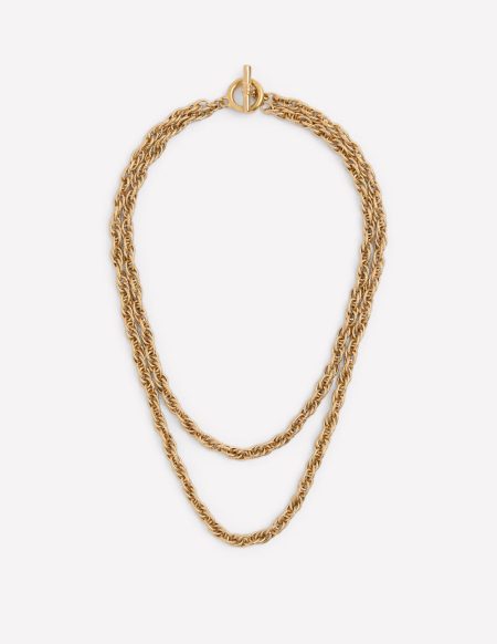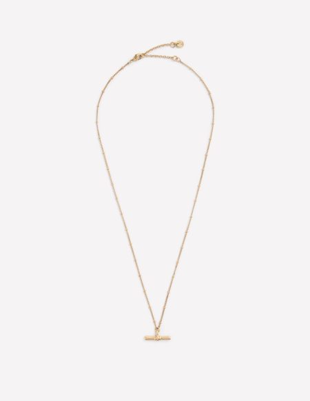 Want to master necklace stacking with zero effort (and zero tangles)? This double layer necklace has two vintage-inspired golden chains and fastens with a T-bar.