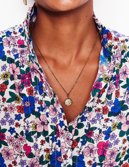 Like your jewellery understated? Enter: this pendant necklace. Its elegant disc spinner is suspended from a delicate ball chain. Pssst… there are matching earrings, too.